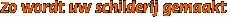Zoals u in onderstaande reportages kunt zien wordt uw schilderij van foto bij ons niet gemaakt door middel van projectie of met andere moderne hulpmiddelen, maar gewoon op de 'ouderwetse' manier, zoals dat al eeuwenlang door kunstschilders wordt gedaan. Puur ambachtelijk dus, van de eerste tot en met de laatste penseelstreek! |